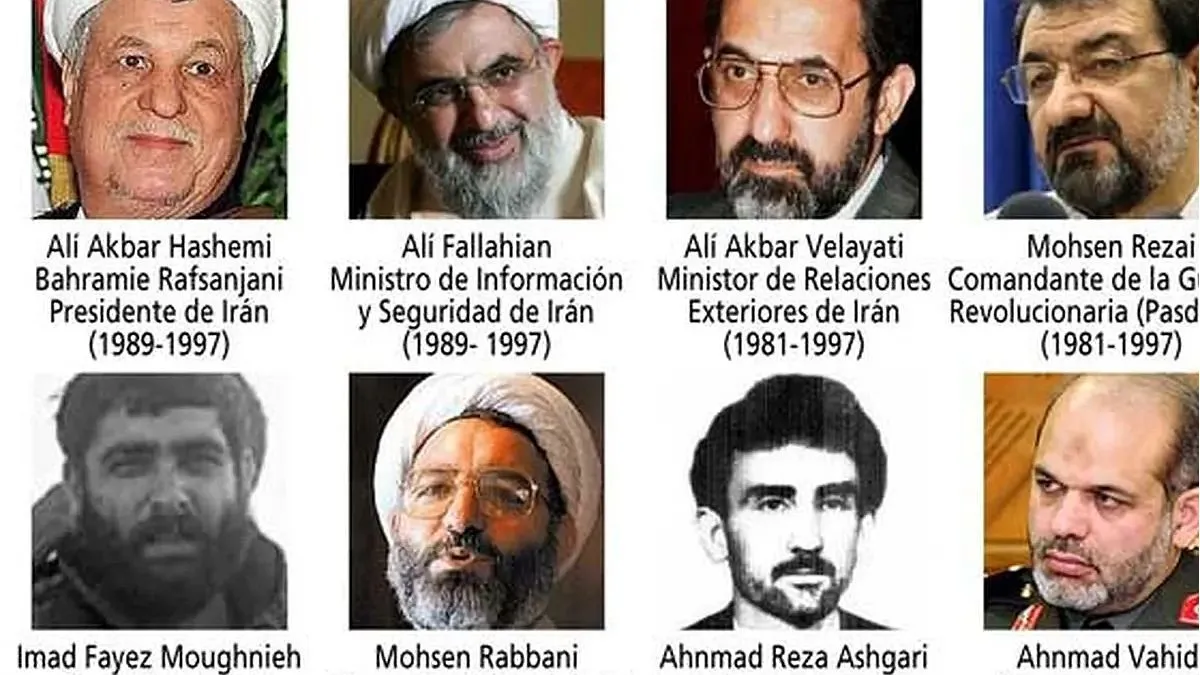 Los diez individuos acusados son Alí Fallahijan, Alí Akbar Velayati, Mohsen Rezai, Ahmad Vahidi, Hadi Soleimanpour, Mohsen Rabbani, Ahmad Reza Asghari, Salman Raouf Salman, Abdallah Salman y Hussein Mounir Mouzannar. Sobre ellos pesa una alerta roja de Interpol y un pedido de captura internacional emitido en 2006, conforme a un dictamen del fiscal Alberto Nisman.